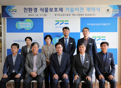 김석철 경기도농업기술원장은 17일 오전 농기원 상황실에서 농업회사법인 흙살림 김행숙 대표와 이런 내용을 담은 기술이전 계약을 맺었다. 이전 기술은 식물추출물을 활용한 해충 제거 제품으로 협약 기간은 3년이다.