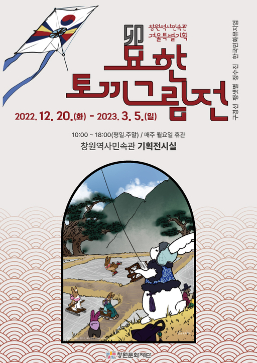 창원문화재단은 2022년 12월 20일부터 2023년 3월 5일까지 창원역사민속관 겨울특별기획 '묘(卯)한 토끼그림전'을 창원역사민속관 기획전시실에서 선보인다.