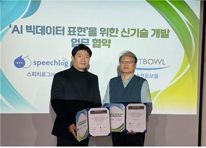 스피치로그는 2일 웹 UI 개발툴 전문회사 소프트보울과 함께 그동안 진행해오던 제품 적용을 넘어 빅데이터의 표현을 위한 신기술 개발 및 활용에 대한 업무협약을 체결했다고 밝혔다.