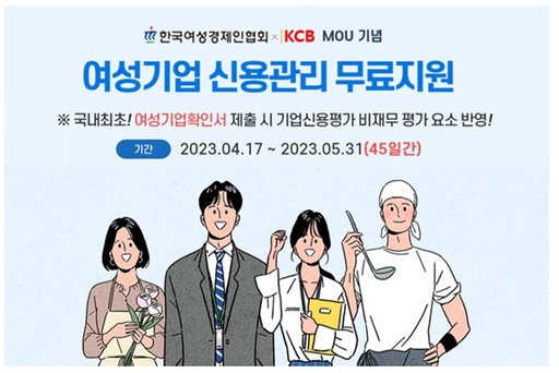 한국여성경제인협회는 종합신용평가사 코리아크레딧뷰로(KBC)와 여성기업의 기업평가 지원 확대 및 KCB 기업평가 활성화를 위한 업무협약을 체결했다고 17일 밝혔다.