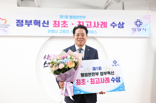 안양시 고령자 스마트 안심서비스가 '제1회 정부혁신 최초·최고 사례' 공모에서 시민 삶의 질을 높인 정부혁신 '최고사례'로 선정됐다.