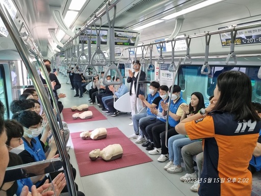 이번 훈련은 기관사의 응급조치 능력을 높여 비상 시 승객 안전을 확보하기 위해 전동차 기관사, 승무지도운용팀장, 인턴 사원을 대상으로 부산진소방서 구급대원의 협조를 받아 부전역 전동차 차량 객실에서 진행됐다.
