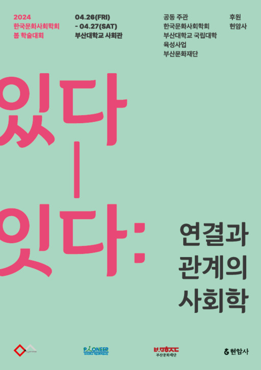 부산문화재단은 오는 26~27일 부산대학교 사회관에서 '2024년 한국문화사회학회' 봄 학술대회를 공동 주관해 개최한다고 밝혔다.