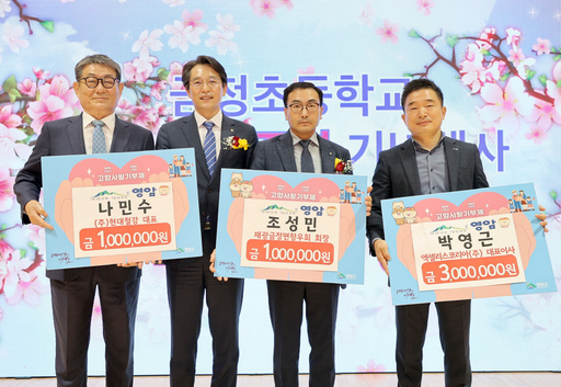 20일 금정초 개교 100주년 기념행사에서는 조성민 재광금정면향우회장과 나민수 ㈜현대철강 대표가 각각 100만원, 박영근 엑셀리스코리아 대표가 300만원을 기탁했다.