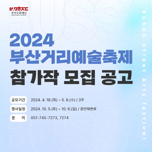 재단 이미연 대표는 "그동안 광장, 공원, 시내 번화가 등 부산의 다양한 거리에서 창의적인 거리예술을 선보여 왔다"며 올해도 부산다운 거리의 매력과 시공간의 아름다움을 보여줄 훌륭한 작품을 기대한다고 말했다.