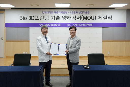 인제대학교 해운대백병원은 21일 병원 세미나실에서 LG전자 생산기술원 생산혁신센터, 이하 제품품격연구소와 'BIO 3D 프린팅 기술 양해각서(MOU)'를 체결했다.
