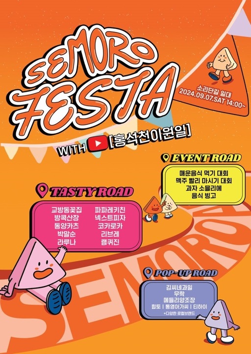 '팝업 로드'에서는 ▲김씨네과일 ▲메들리 양조장 ▲티하이 ▲힙토 ▲무학 등 다양한 브랜드의 팝업 스토어가 운영된다. 음악공방, 올옷, DJ 주운 등 지역 아티스트들이 참여하는 '뮤직 로드'에서는 다양한 공연이, '마켓 로드'에서는 플리마켓이 진행된다. '이벤트 로드'에서는 매운 음식 먹기 대회, 맥주 빨리 마시기 대회, 과자 소물리에 행사 등이 열린다.
