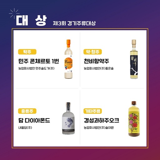 포천시는 1일 민주술도가(대표 신신애)의 '콘체르토 1번(NO.1)'이 2025년 제3회 경기주류 품평회 탁주 부문에서 최고상인 대상을 수상했다고 밝혔다.