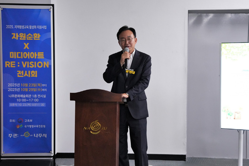 나주시는 교육부 공모사업인 '2025 지역평생교육활성화 지원사업'의 성과 전시인 '미디어아트×분리배출 RE:VISION' 전시회를 오는 29일까지 나주문화예술회관 1층 전시실에서 개최한다.