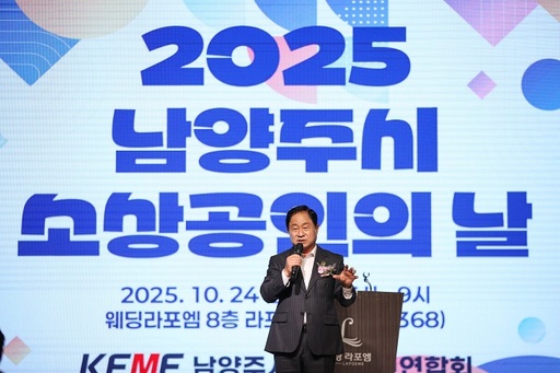남양주시(시장 주광덕)는 지난 24일 다산동 브릭스타워 웨딩라포엠에서 '2025년 소상공인의 날 기념행사'가 소상공인 등 시민 200여 명이 참석한 가운데 성황리에 마무리됐다고 26일 밝혔다.남양주시 소상공인엽합회(회장 이윤재)가 주관한 이번 행사는 법령에서 정한 소상공인의 날(매년 11월 5일)·소상공인 주간을 맞아 관내 소상공인들을 격려하고, 미래의 새 목표와 희망을 제시하기 위해 마련됐다.