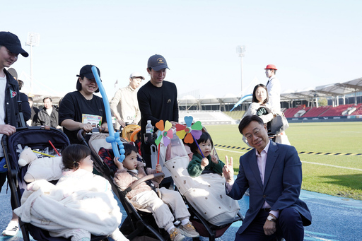 신상진 성남시장은 1일 오전 7시 30분부터 12시 30분까지 탄천종합운동장과 탄천변 산책로에서 열린 '우리가족 꼬마영웅 유아차 올림픽'에 참석해 참가 가족들을 격려했다.