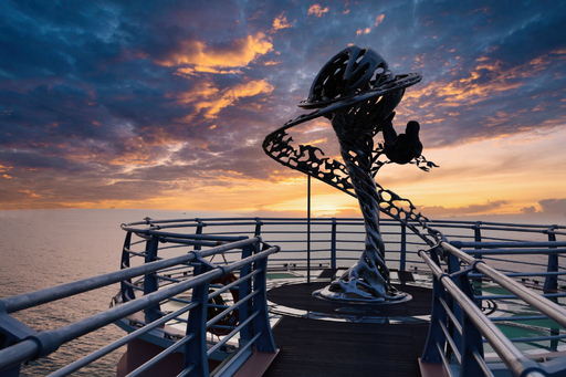스카이워크 정상에 설치된 조형물 너머로 퍼지는 붉은빛은 대지를 깨우는 자연의 경이로움을 느끼게 하며, 발아래 펼쳐진 후포항은 고요 속에 생기를 머금고 있다. 사진 속 찰나의 장면은 찬 공기를 가르며 스며든 빛이 비단결 바다 위에 그리는 황홀한 붓질이다.