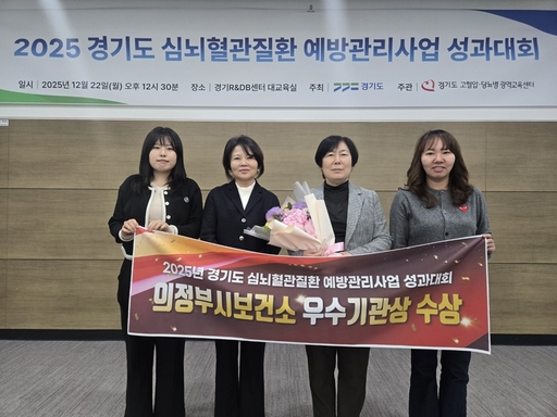의정부시 보건소(소장 장연국)는 12월 22일 '2025년 경기도 심뇌혈관질환 예방관리사업 성과대회'에서 '우수 기관'으로 선정돼 경기도지사 표창을 수상했다.