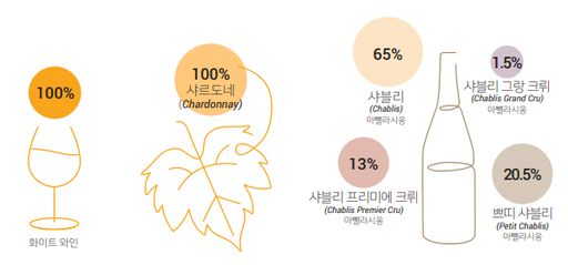 팩트만 모아 놓고 보면 샤블리는 지극히 단순하다. 동서 약 18㎞, 남북 약 16㎞에 불과한 작은 산지다. 품종은 단 하나 샤르도네. 100% 화이트 와인. 프랑스 와인을 알아갈 때 그 복잡함으로 우리를 괴롭히는 원산지통제명칭(AOC)도 4개가 전부다.