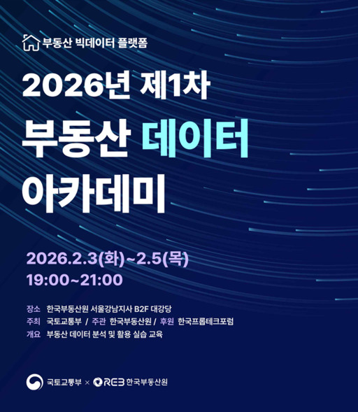 한국부동산원은 다음달 3일부터 5일까지 한국부동산원 서울강남지사에서 '2026년 제1차 부동산 데이터 아카데미'를 개최한다고 27일 밝혔다.