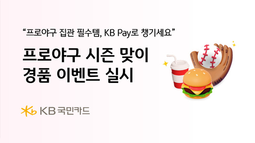 KB국민카드는 내달 8일까지 프로야구 시즌을 맞아 '프로야구 집관 필수템 KB 페이(Pay)로 챙기세요!' 경품 이벤트를 실시한다고 6일 밝혔다.